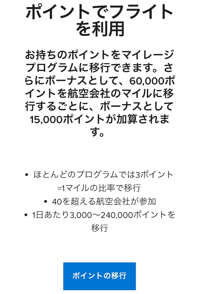60,000ptごとに15,000pt分のマイルがボーナスとして加算されます